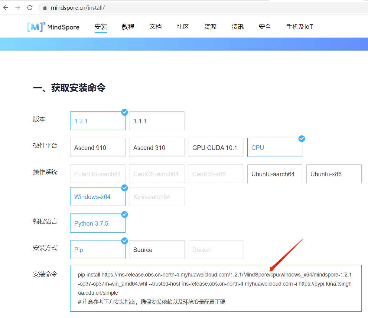 配置完PyCharm之后,我们去MindSpore官网 https://www.mindspore.cn/tutorial/training/zh-CN/r1.2/index.html