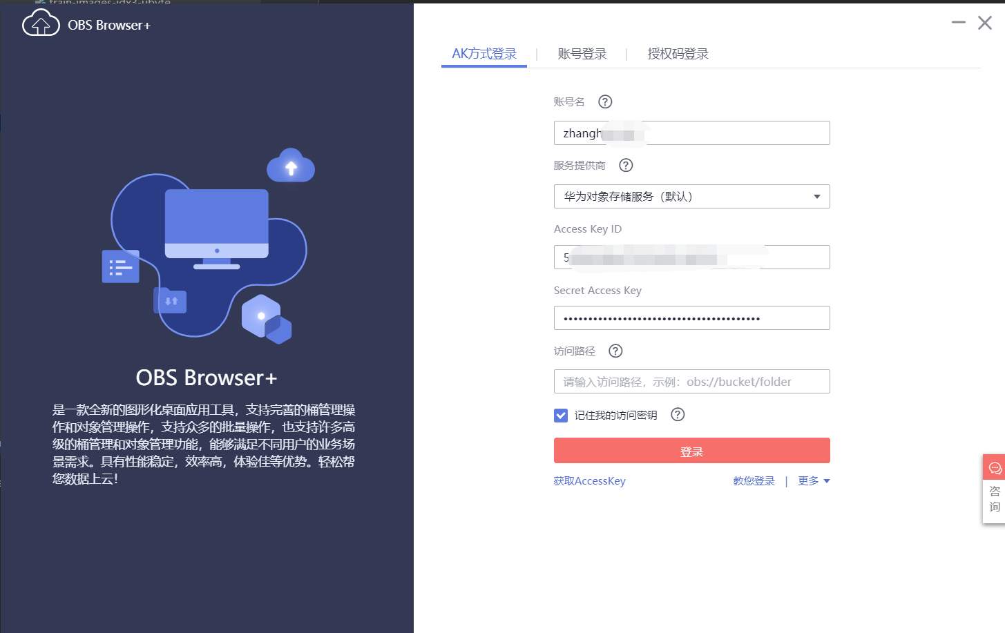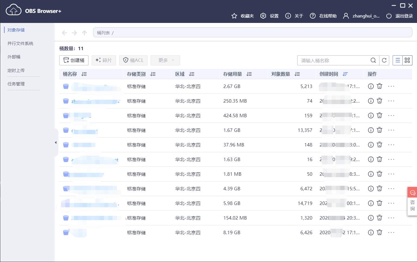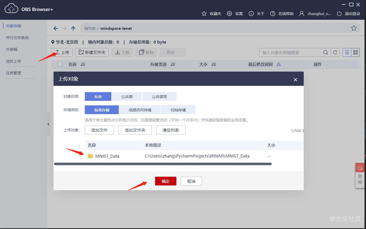 用OBS Browser plus建一个桶,以供PyCharm的ModelArts插件运行时使用: