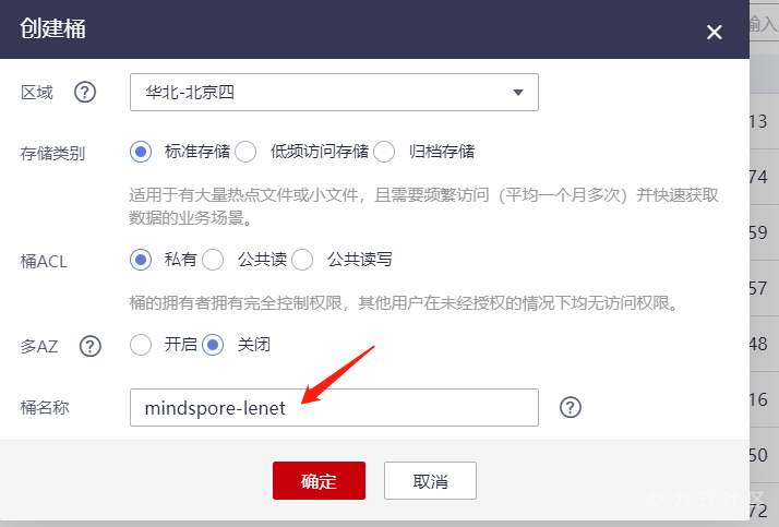 创建桶:mindspore-lenet