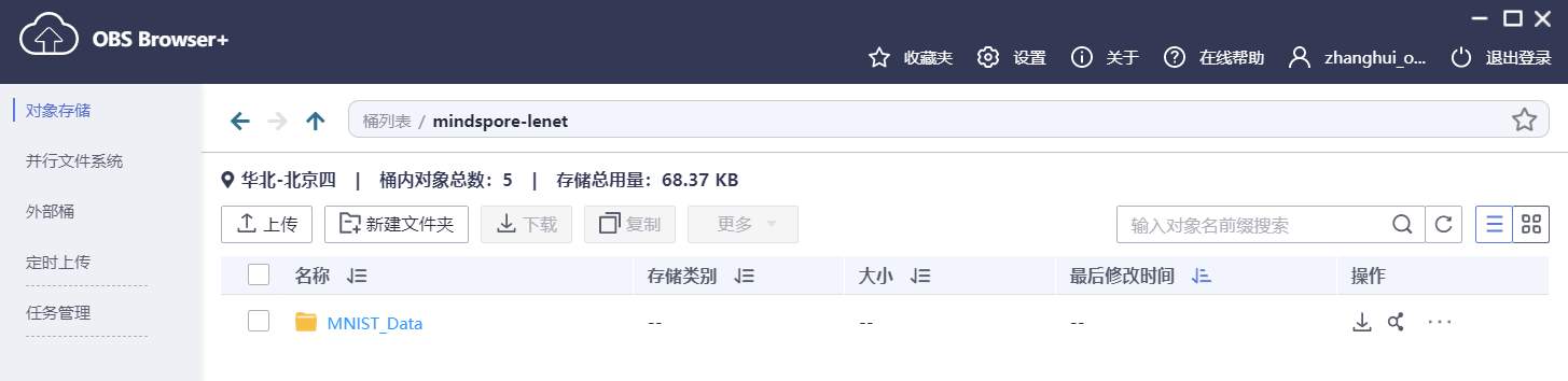 Data Path in OBS:填写 /mindspore-lenet/MNIST_Data/
