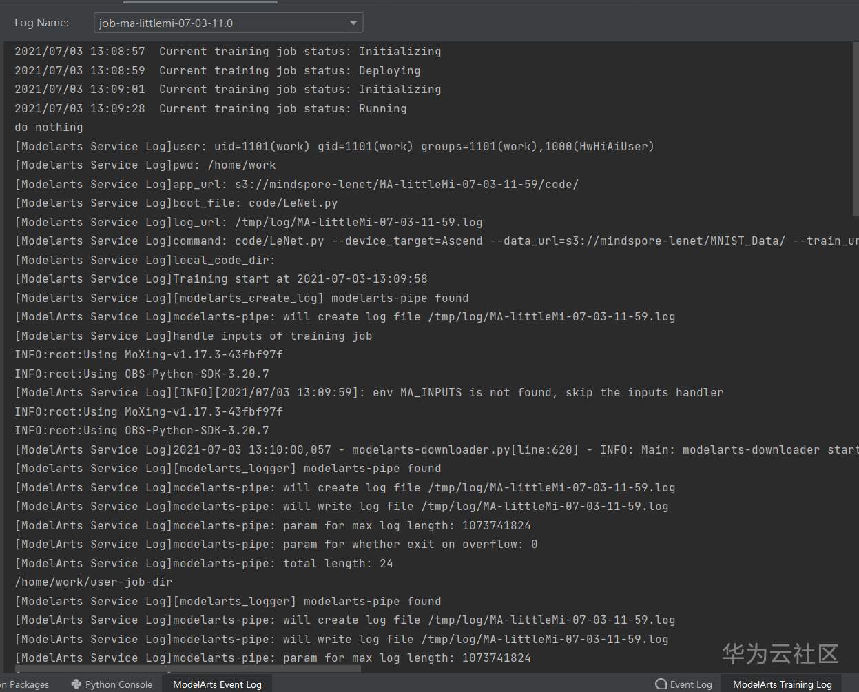 【昇腾CANN训练营第二期】【模型营】使用PyCharm的ModelArts插件训练LeNet网络