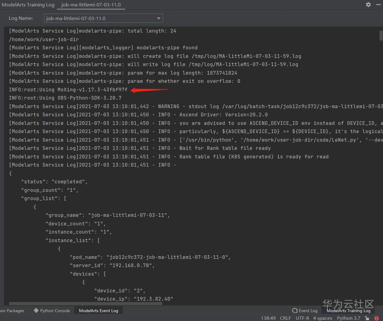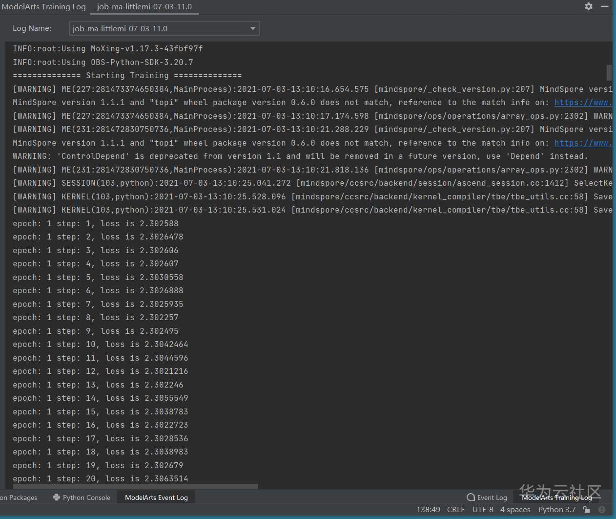 ModelArts的日志会报以下内容: