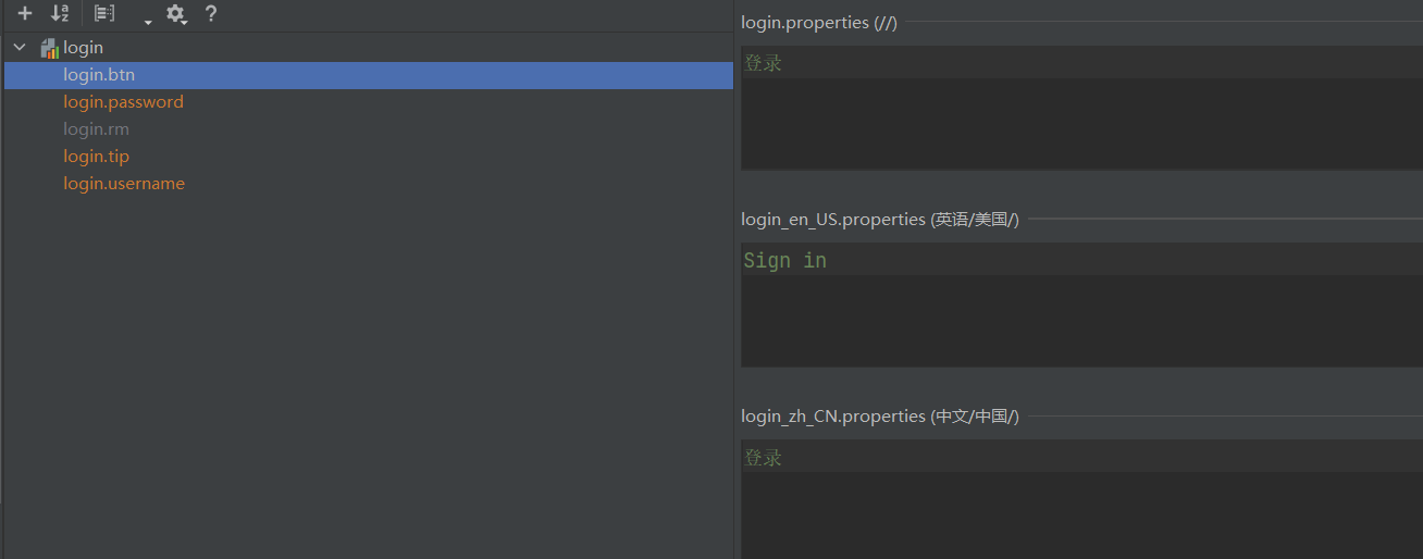 1.1.4 此时添加别的语言的配置文件,可以继续像上面手动添加配置,也可以通过右键Resource Bundle ‘login’文件夹New==》Add进行配置