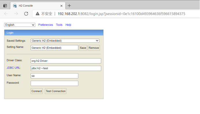 控制台左上角可以选择语言,设置好JDBC URL,User Name和Password就可以直接连接了,第一次连接会在JDBC URL设置的地方生成对应的 .mv.db