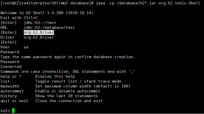 java -cp/database/h2*.jar org.h2.tools.Shell