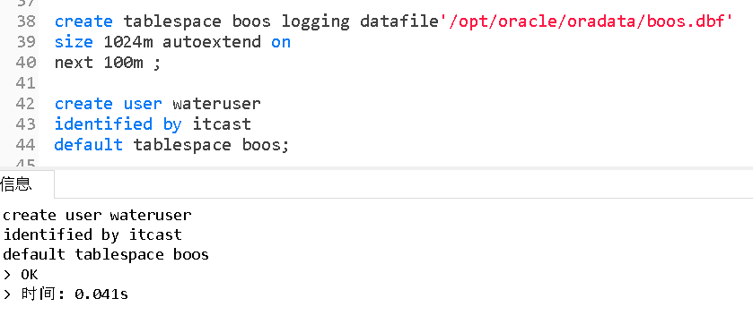 #创建用户,指定表空间(一个表空间可以建立多个用户)