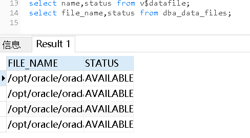 #检查Oracle所有数据文件状态