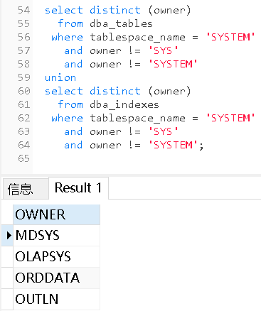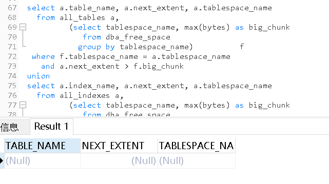 #查询Oracle中有哪些可用存储空间