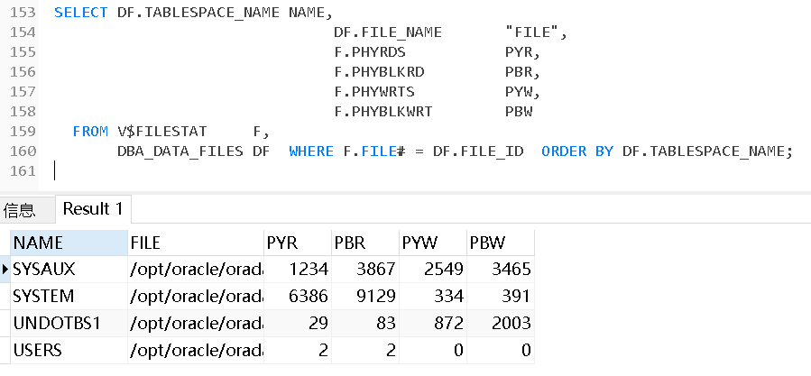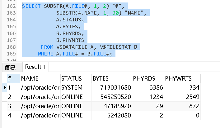 FROM V$FILESTAT     F,