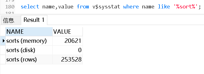 select name,value from v$sysstat where name like '%sort%';