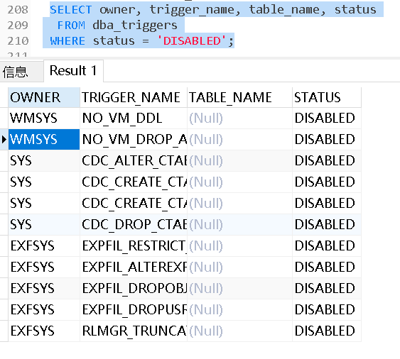 #检查无效的trigger