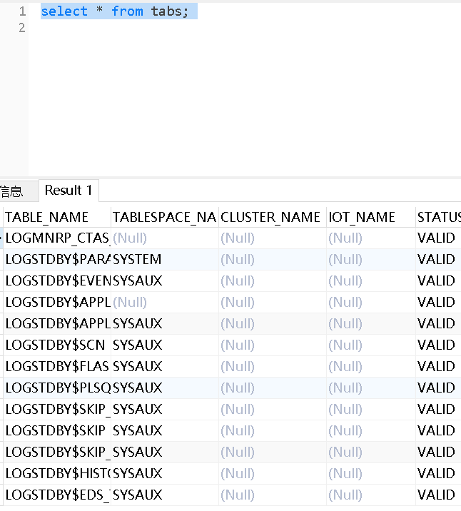 select * from tabs;