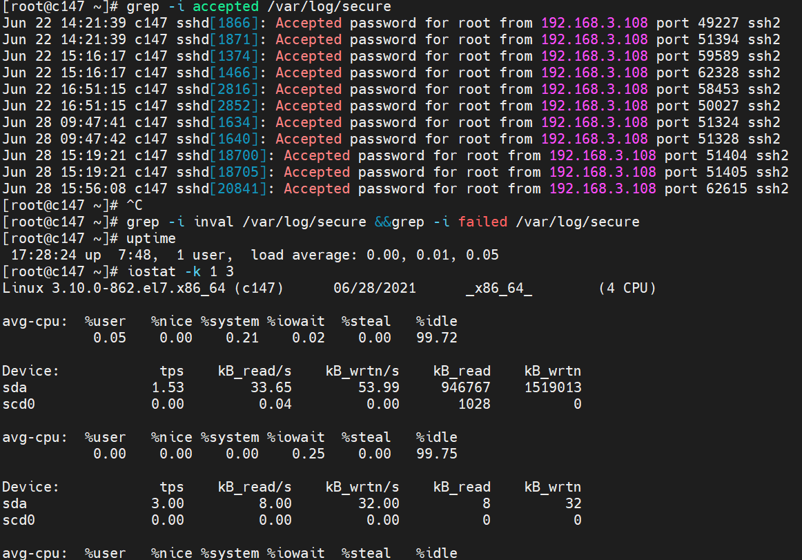 grep -i inval /var/log/secure &&grep -i failed /var/log/secure