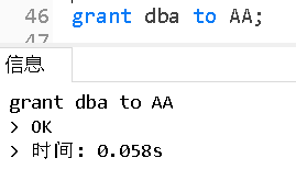 #将dba权限赋予给AA用户,DBA的权限主要是对数据库对象而言具有可完全操作的权限
