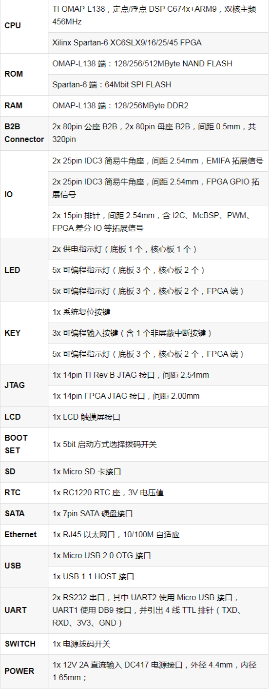 基于TI OMAP-L138(定点/浮点 DSP C674x+ARM9)+ Xilinx Spartan-6 FPGA处理器;