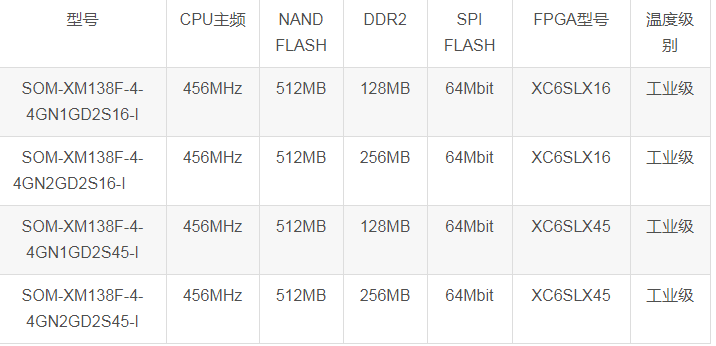 备注:标配为 SOM-XM138F-4-4GN1GD2S16-I,其他型号请与相关销售人员联系。