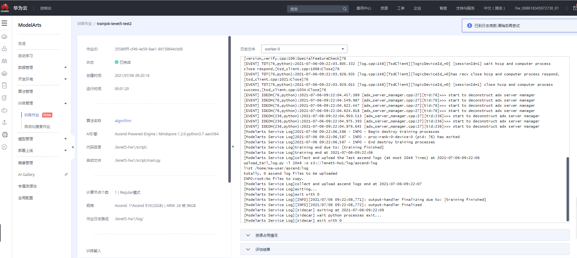 时间作业要求:使用华为云Ascend910在MNIST上面训练LeNet网络,上传loss截图和推理精度截图