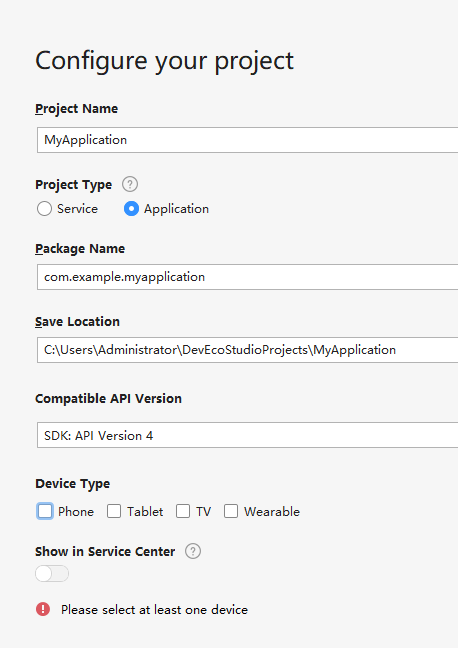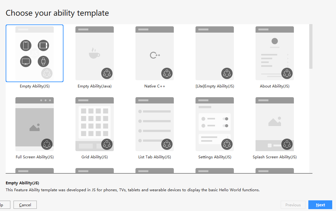 DevEco Studio集成了Phone、Tablet、TV、Wearable、LiteWearable等设备的典型场景模板,可以通过工程向导轻松的创建一个新工程。