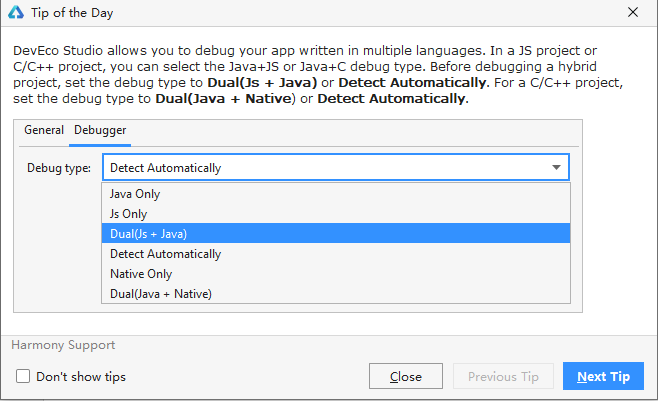 应用开发完成后,可以使用真机进行调试或者使用模拟器进行调试,支持单步调试、跨设备调试、跨语言调试、变量可视化等调试手段,使得应用调试更加高效。