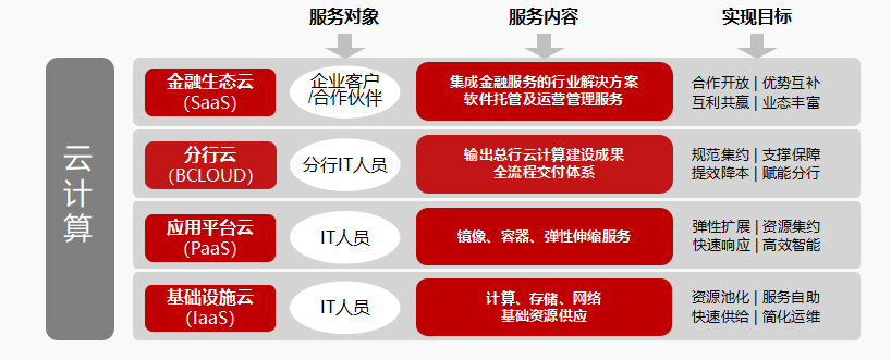 - 应用平台云:通过引入开源容器技术Docker、容器集群调度技术Kubernetes等,自主研发建设应用平台云。