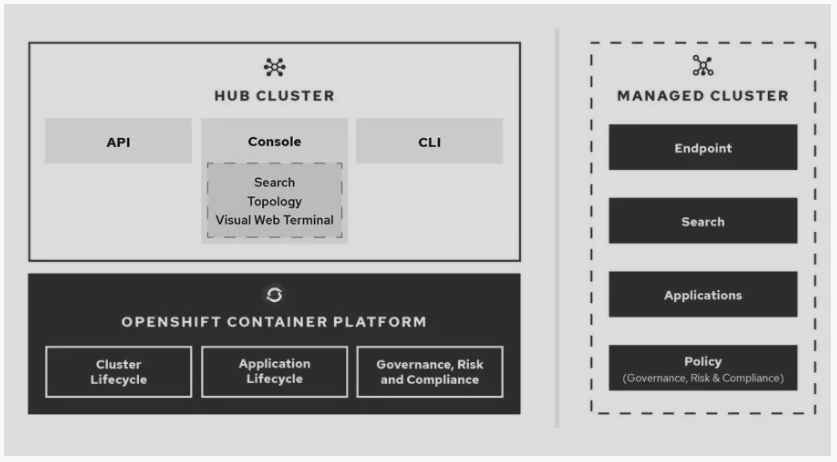我们调研的第二个项目是RHACM,该项目主要由红帽和 IBM主导,整体调研下来,发现它的功能是比较健全的,包括我们刚刚所提的能力也是具备的,而且它上层应用application层对于对用户那一层的能力比较靠近云管平台这样一个定位,但它仅仅支持Openshift,对于我们已经存量有这么多的k8s集群来说,改造成本非常大,而且太重了。而在我们进行研究的时候,它还没有开源,社区的整体支持力度是不够的。