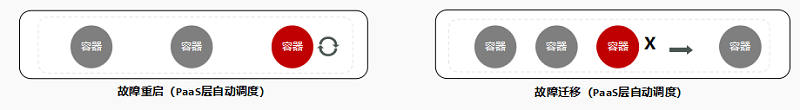 2)在故障情况下,云平台通过容器重启及自动漂移,实现故障的自动恢复。