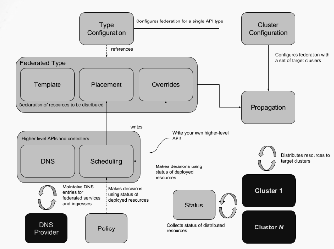 我们调研的第一个是之前比较火的一个集群联邦federation项目, federation整体是分v1和v2的版本,我们去调研的时候,那个时候已经主要是v2也就是Kubefed。