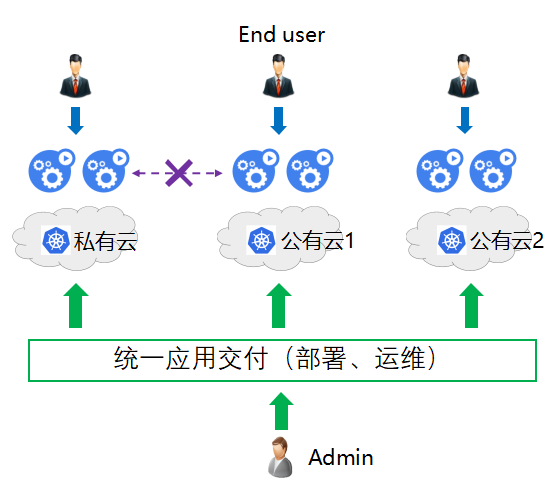 - 业务分散:应用在各集群的差异化配置、业务跨云访问、集群间的应用同步