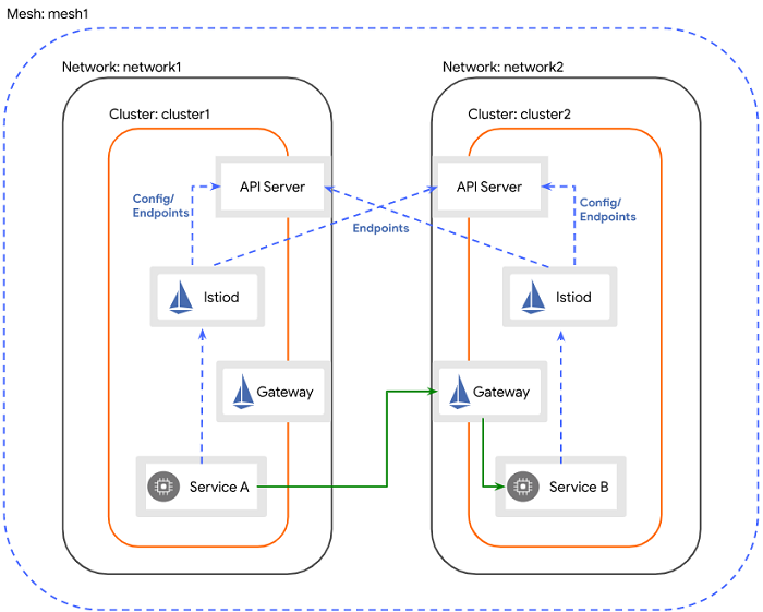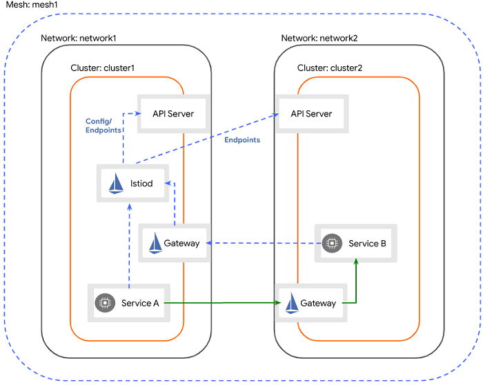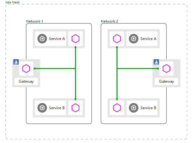 - Sidecar连接本集群内的Istio控制面,与单控制面相比,有更好的性能和可用性