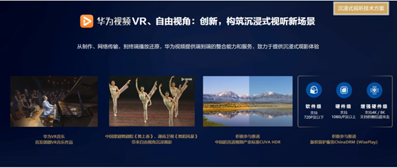 创新视听技术解决方案:在原子化的技术创新方面,华为视频在VR音乐的制作方面,前不久跟朗朗合作,一起发布了完全通过VR方式来制作的,带3D空间音效的VR作品。在自由视角的内容制作和播放方面,与湖南电视台合作了《舞蹈风暴》,与中国歌舞剧院合作了《舞上春》。