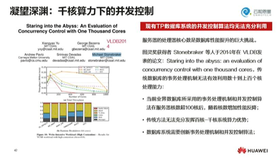 在千核算力下,如何实现更好的并发控制。我们总希望提供更好的硬件,但硬件提供了,性能下降了。经常会看到一个数据库系统上,只有一核CPU在100%运转,而其他的核心则非常空闲,这就使整体性能无法展现的一个高效的状态。也就是说,服务器的处理核心数是数据库性能提升的巨大挑战。
