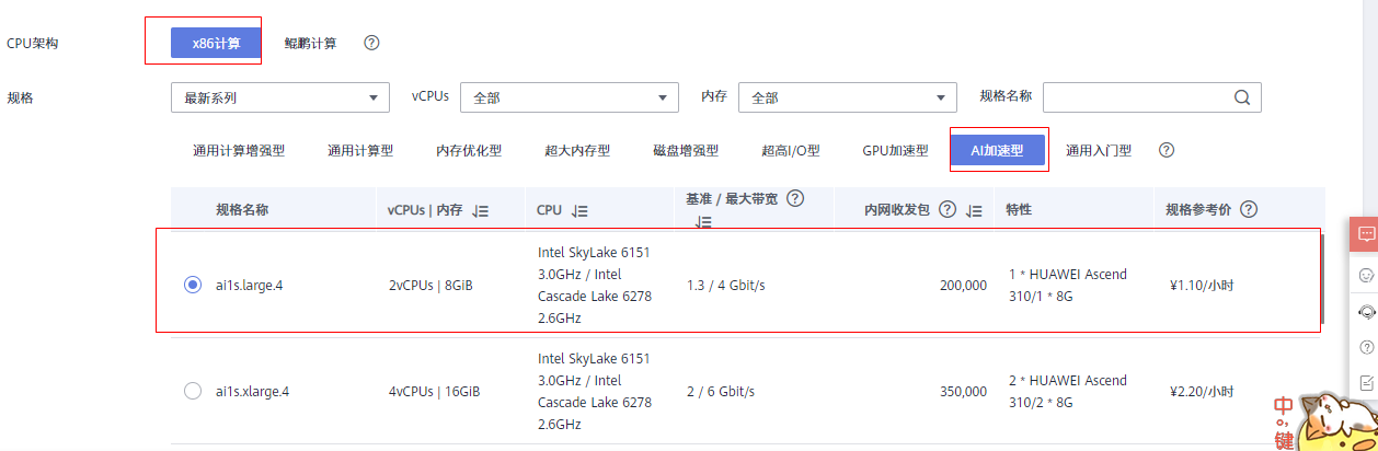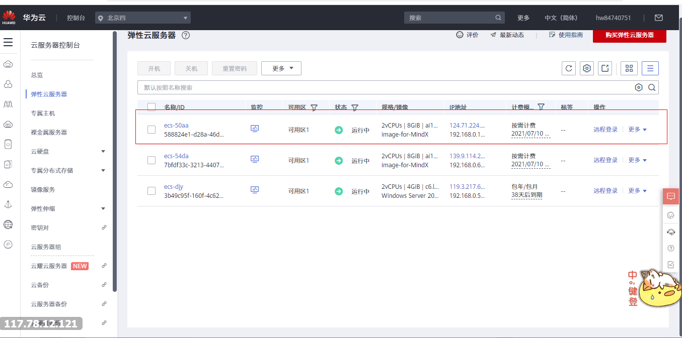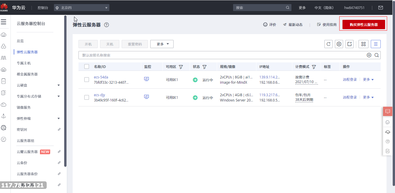 打开控制台-弹性云服务器-选择购买弹性云服务器