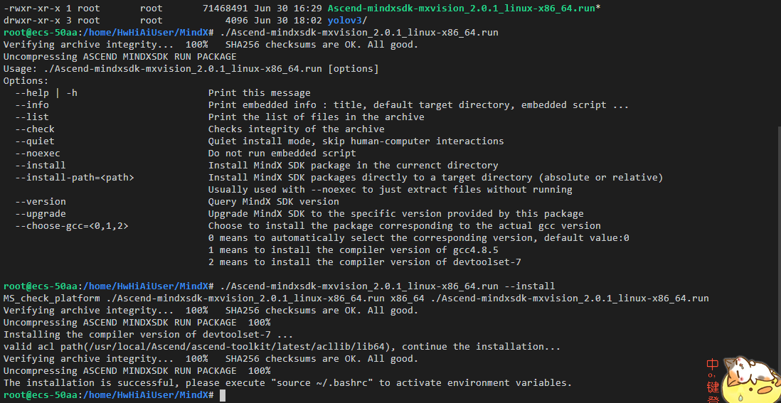 ./Ascend-mindxsdk-mxvision_2.0.1_linux-x86_64.run --install