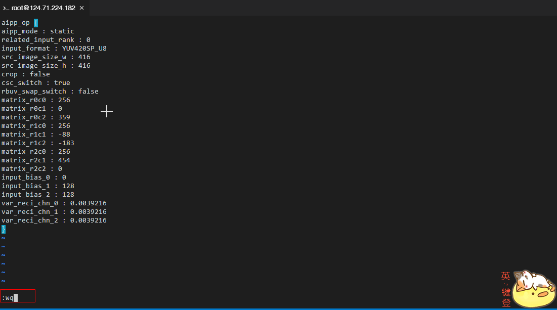 vi aipp_yolov3_416_416.aippconfig 然后在文件里写入上面信息