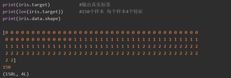 print(iris.target) #输出真实标签