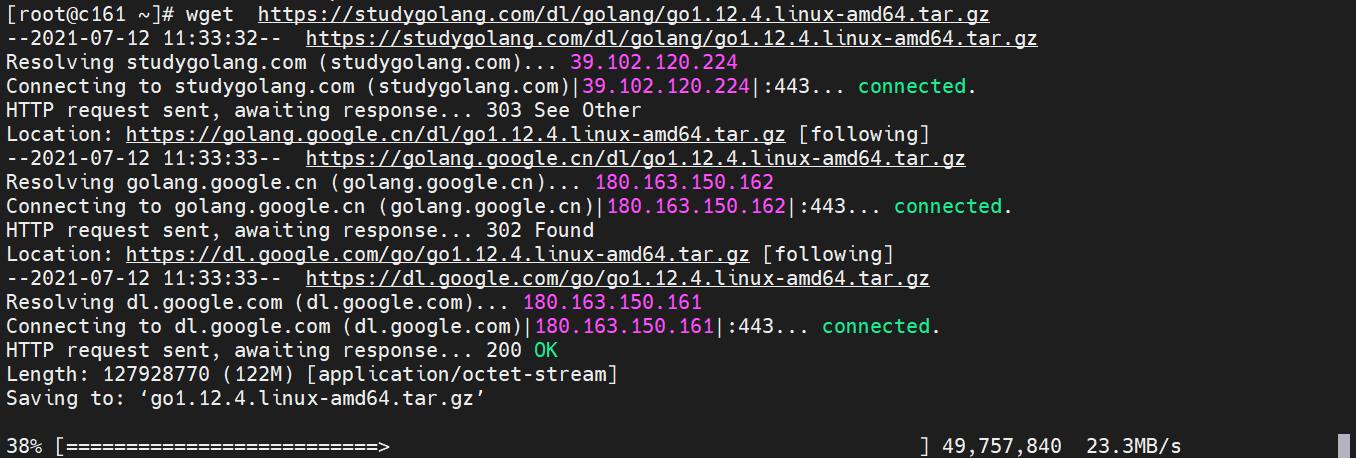 wget https://studygolang.com/dl/golang/go1.12.4.linux-amd64.tar.gz