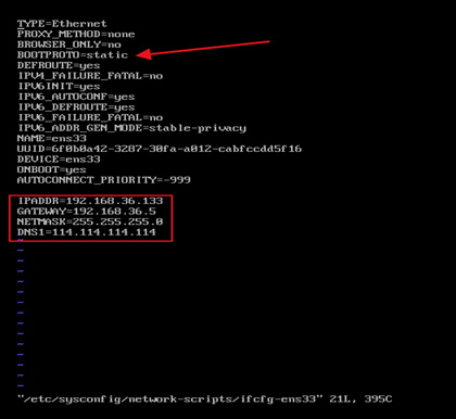 vi /etc/sysconfig/network-scripts/ifcfg-ens33