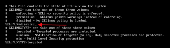 修改SELINUX的参数改为disabled