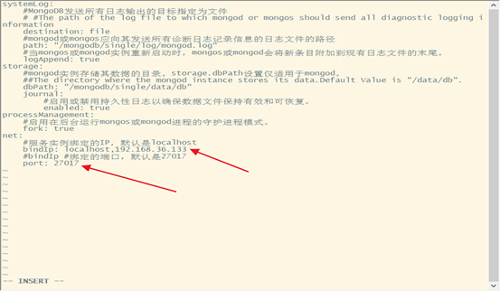 vi /mongodb/single/mongod.conf