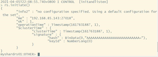 执行初始化副本集命令: