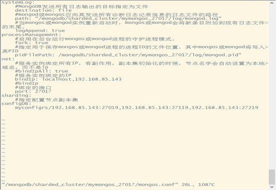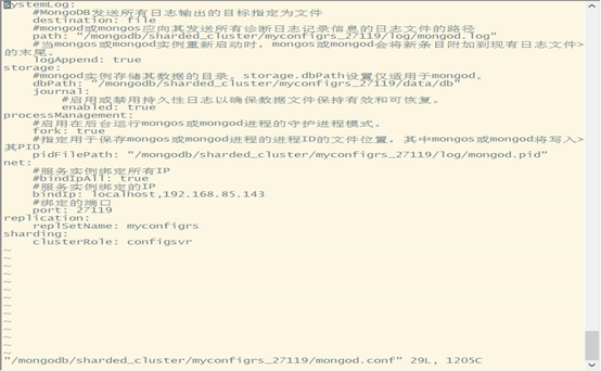 vi /mongodb/sharded_cluster/myconfigrs_27119/mongod.conf