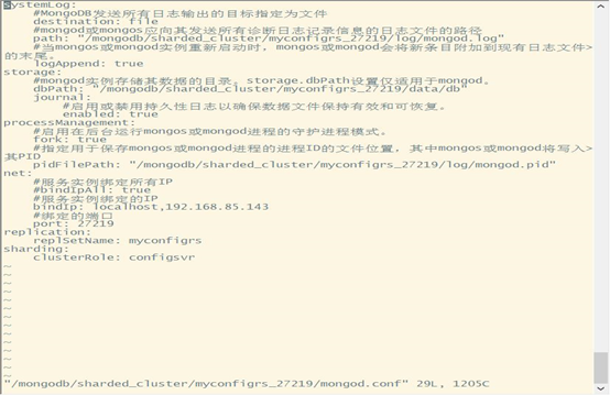 vi /mongodb/sharded_cluster/myconfigrs_27219/mongod.conf