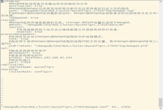 vi /mongodb/sharded_cluster/myconfigrs_27019/mongod.conf