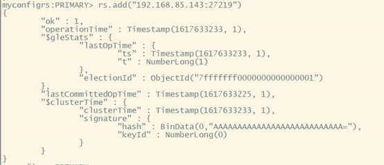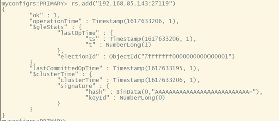 rs.add(“192.168.85.143:27119”)