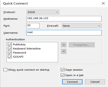 输入需要连接的虚拟机IP地址和root用户名,点击Connect