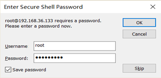 输入root密码,并Save password,点击OK,成功连接到虚拟机