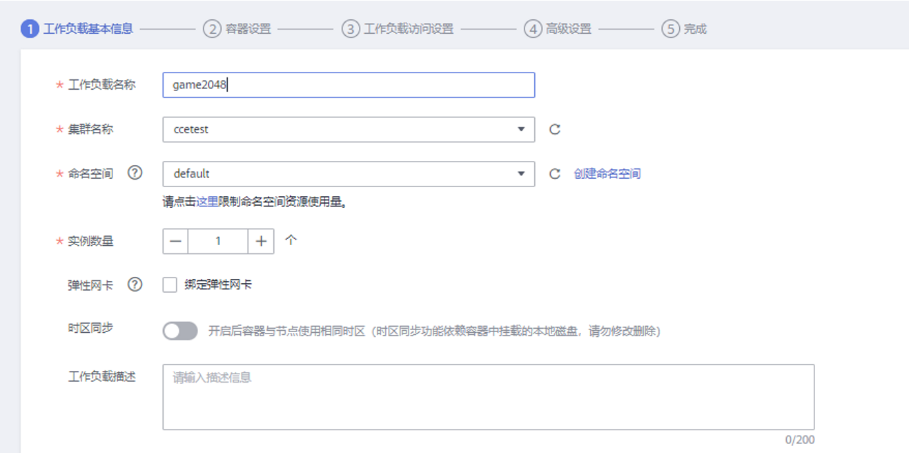 步骤2:创建无状态的工作负载,实例数量选择1个,选择过多则无法正常运行。