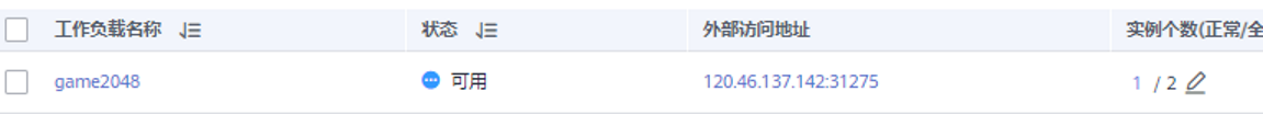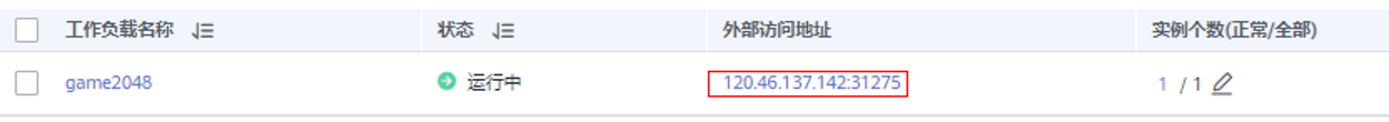 步骤6:完成创建后可以看见改工作负载,点击外部访问地址,打开网页