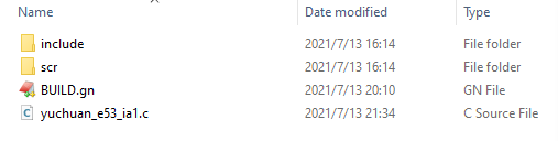 修改applications\BearPi\BearPi-HM_Nano\sample路径下 BUILD.gn 文件,指定 yuchuanE53IA1 参与编译。