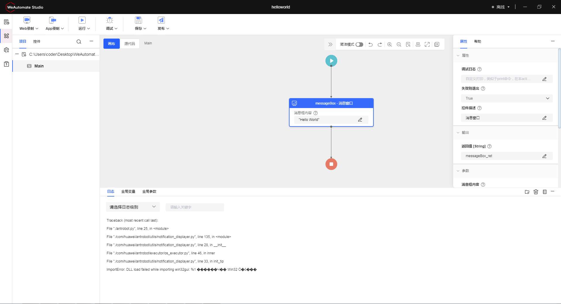 【RPA训练营】安装WeAutomate Studio后新建项目 运行后报错 ImportError: DLL load failed while importing win32gui: %1 Ч Win32 Ӧ ó